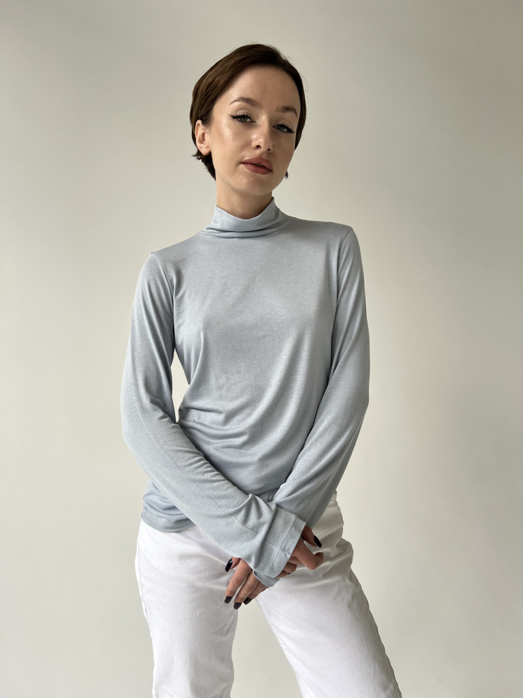 Бадлон, гольф, водолазка из тонкой вискозы, в небесно-голубом цвете. Невесомый, тактильно приятный, нежного голубого цвета - идеальный вариант как для самостоятельного повседневного "верха", так и под жакет/пиджак.