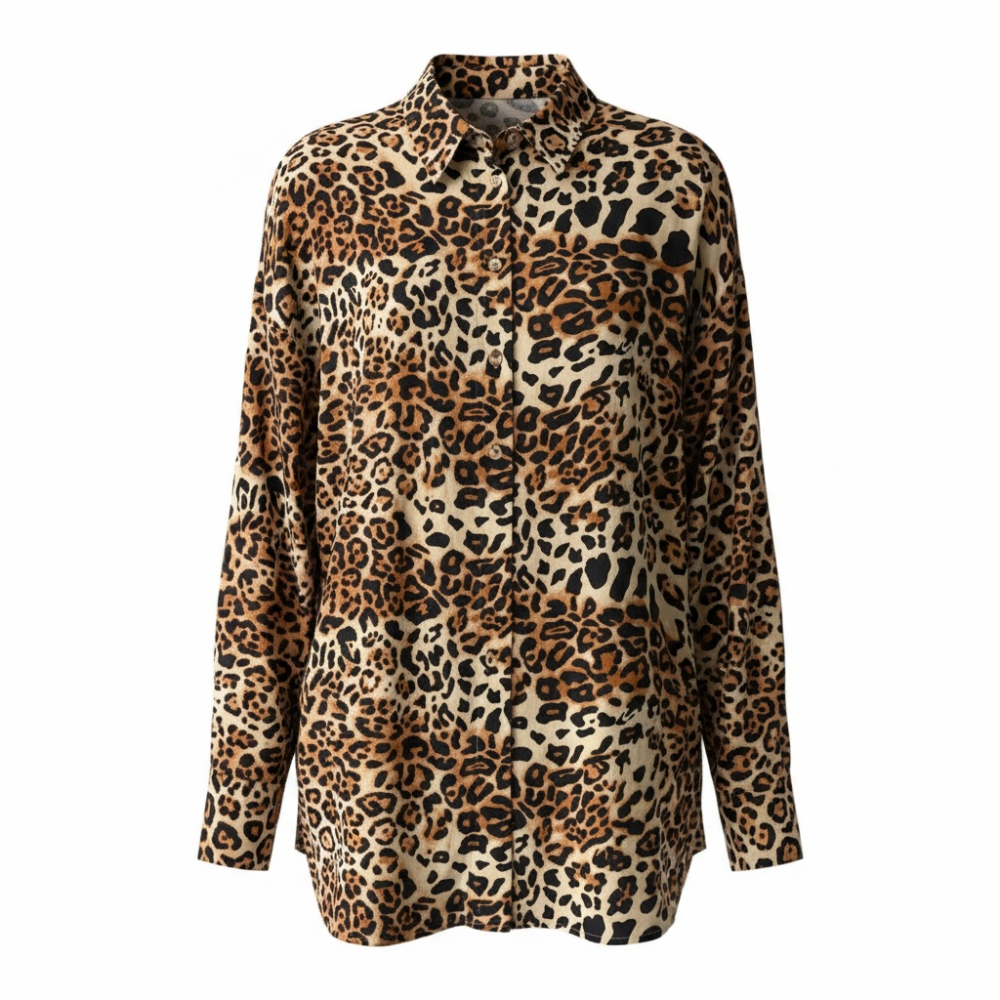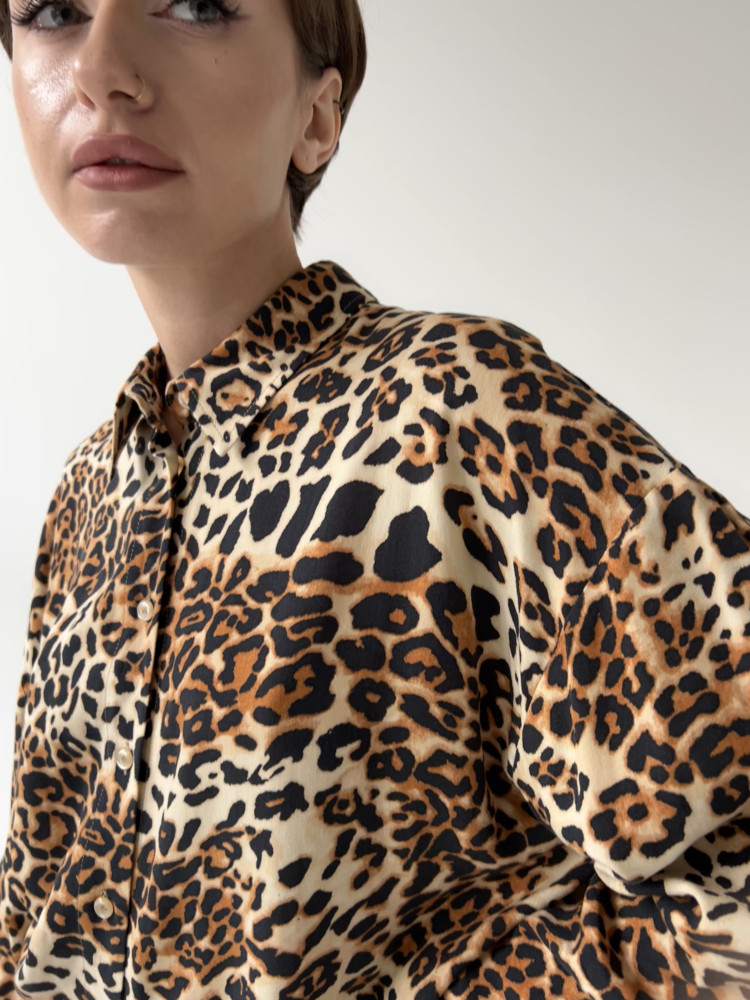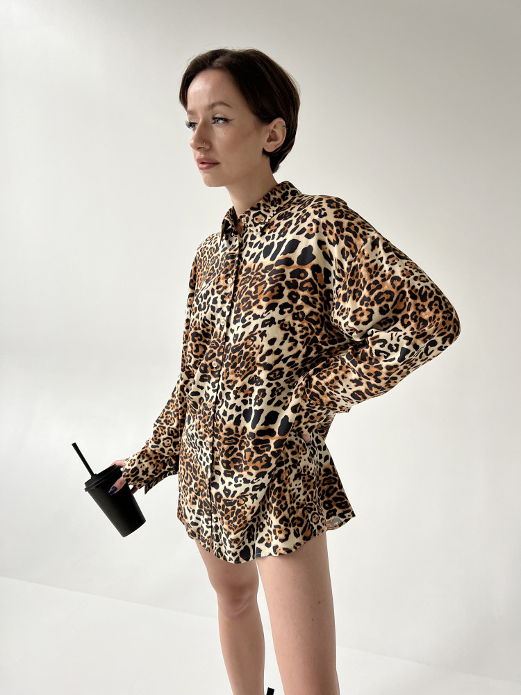Блуза из вискозы в леопардовом принте. Благодаря свободному крою, S-размер изделия подойдет на размер от S до L (42 - 54), M-размер изделия подойдет на размер от M до XXL (48 - 58)