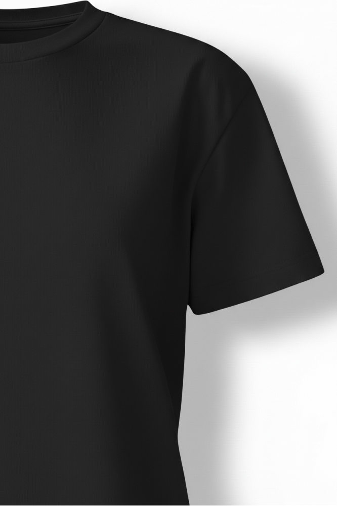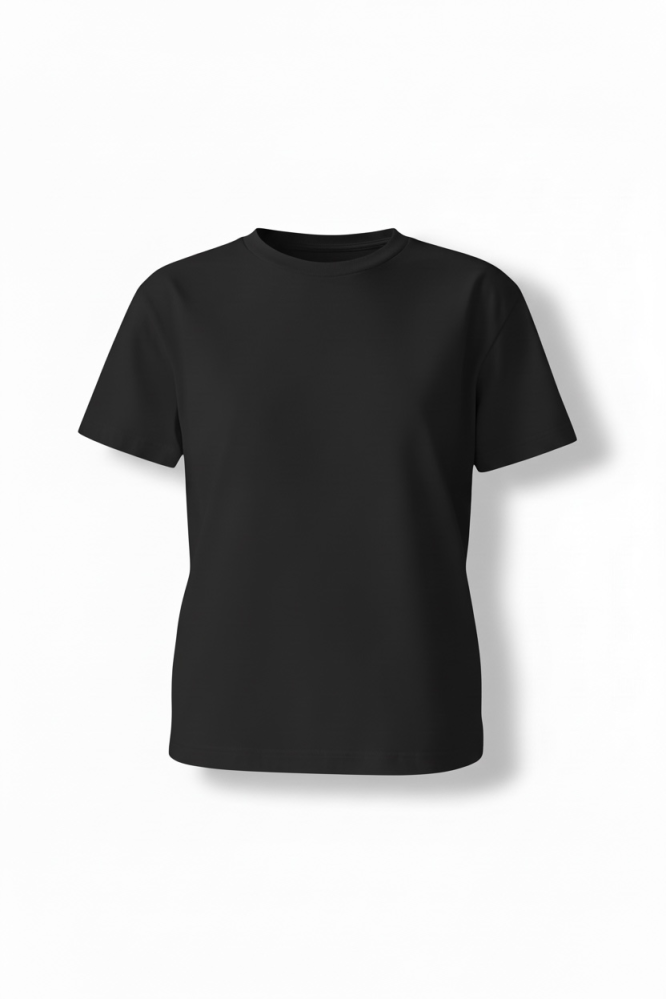 Базовая женская плотная черная футболка из хлопка с добавлением лайкры. Имеет классический крой, идеальна для делового гардероба. Отлично держит форму, мягкая, приятная к телу. Плотность 280 гр/м2.