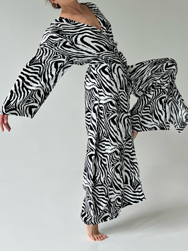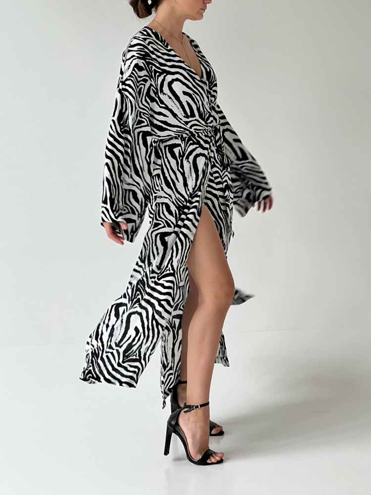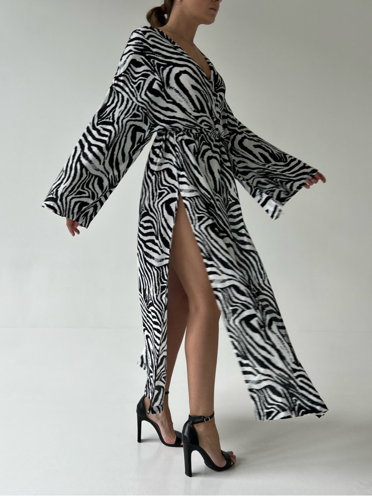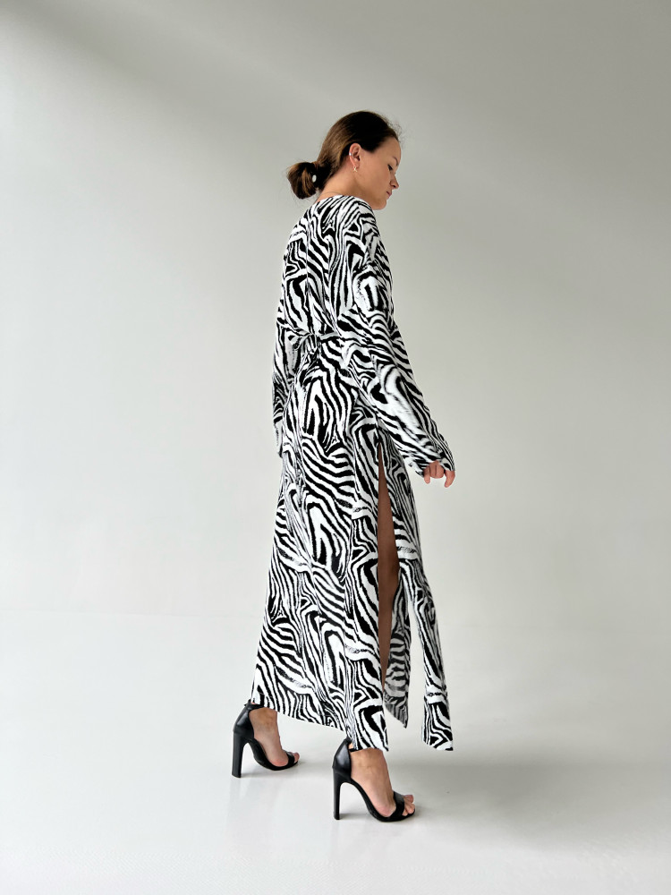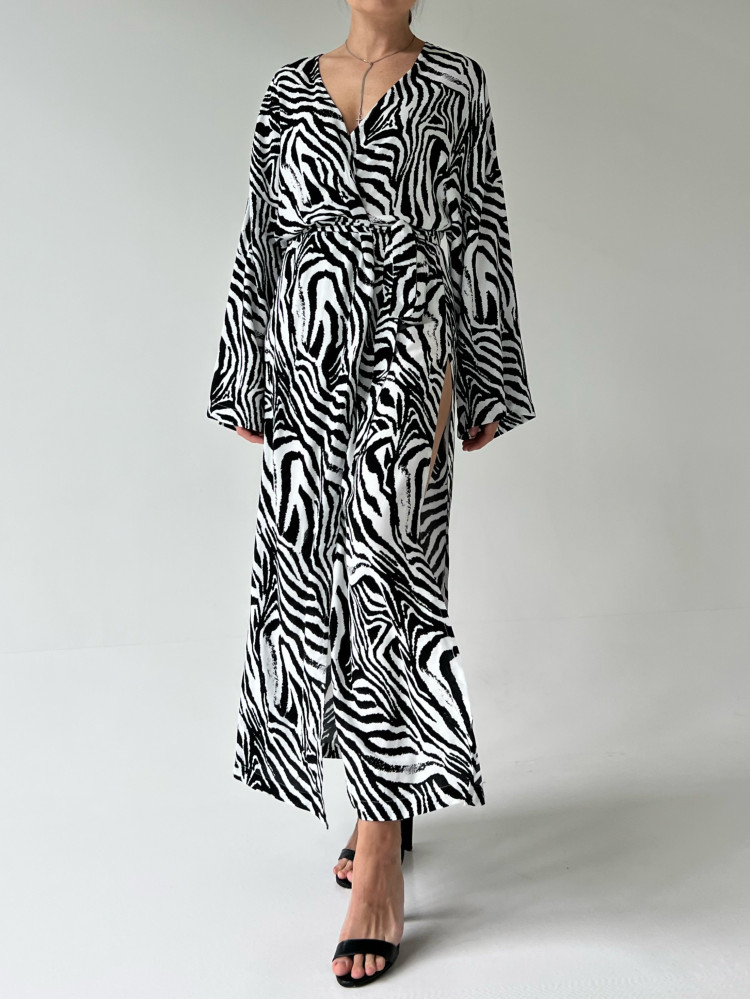 Платье - туника с поясом из 100% вискозы с анималистичным принтом, может быть дополнена брюками. Идеальный летний вариант для городских прогулок и пляжного отдыха.
