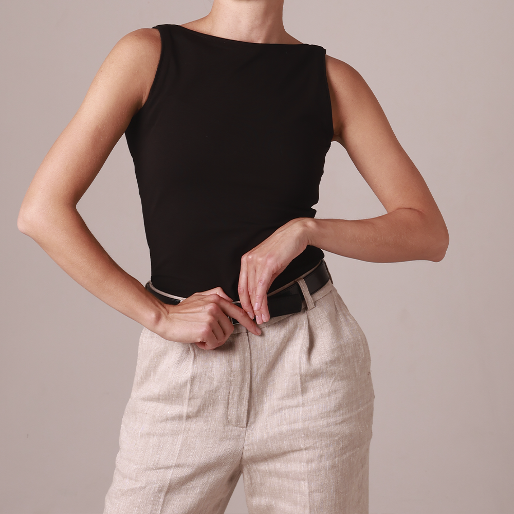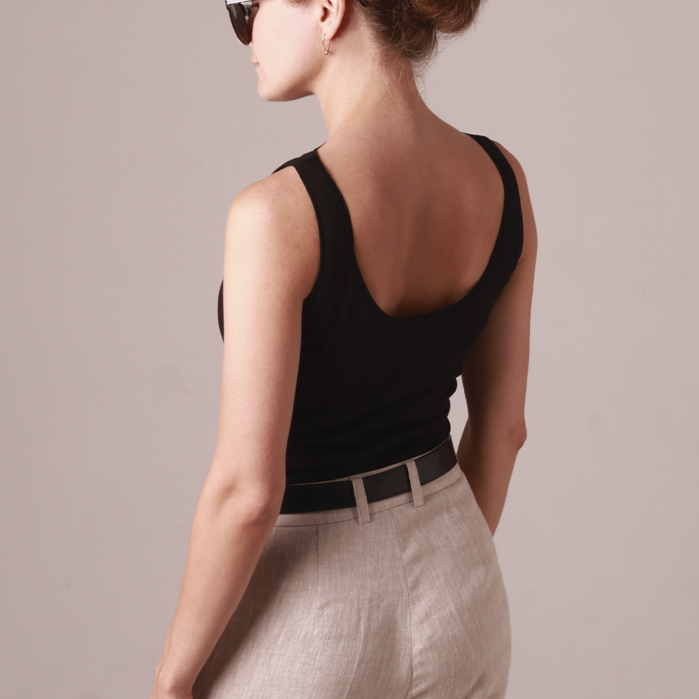 Топ-перевертыш DOUBLE в цвете "черный" с акцентным вырезом на груди или спине, один топ - несколько образов.